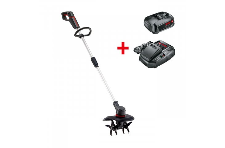 - Broj artikla: 113966 18 V litij-ionska baterija (baterija 2,5 Ah i punjač su uključeni) 4 x 4 noževi / Težina s akumulatorom 3,8 kg / Širina kopanja 200 mm / Dostupne su baterije od 2,5 / 4 / 5 i 6 Ah. AL-KO 18 V BOSCH HOME AND GARDEN COMPATIBLE