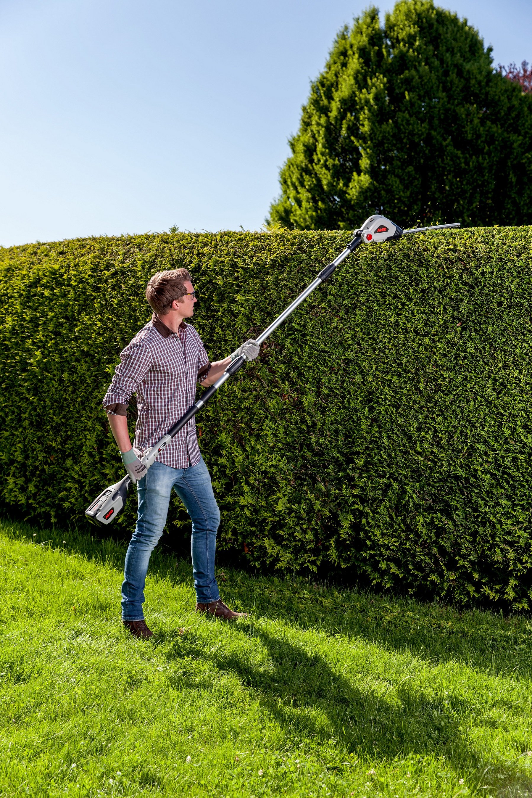 Zahvaljujući produžetku cijevi sadržanom u opsegu isporuke škare za živicu možete produžiti za 70 cm i tako ćete dosegnuti radnu visinu i do 3,5 m.