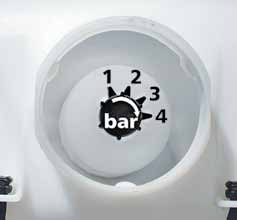Impresivna snaga prskanja, podešavanje tlaka od 1 do 4 bara, a sa čepom za zatvaranje postiže se i 6 bara tlak prskanja.