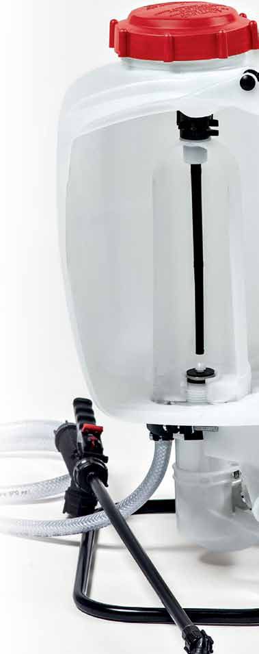 Prskalica je opremljena visokootpornim brtvama VITON® za prskanje agresivnijih sredstava. Udobna poluga pumpe s mogućnošću podešavanja visine brine se za ergonomski rad.
