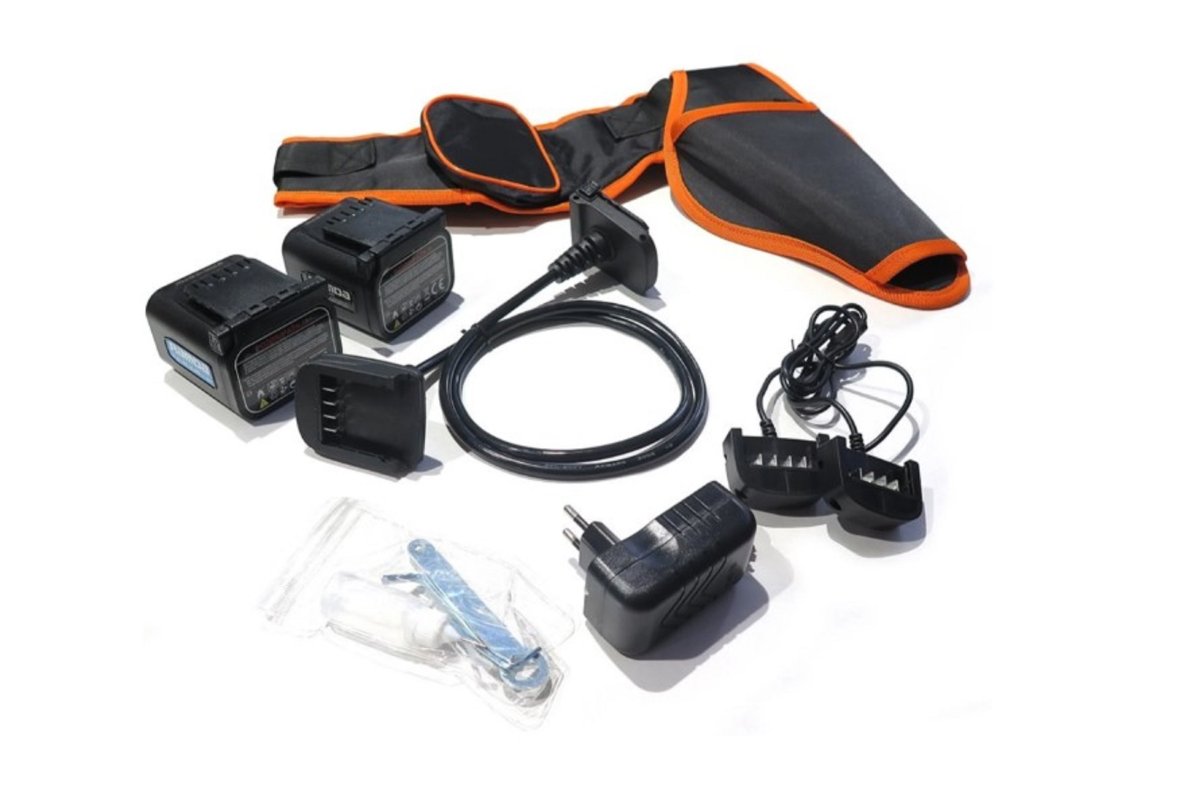 Baterijske škare za rezidbu RAMDA. Set sa dvije baterije 4 Ah, punjačem, alatom i torbom za nošenje. Vrijeme rada: cca. 4-6h Broj artikla: RA 690033