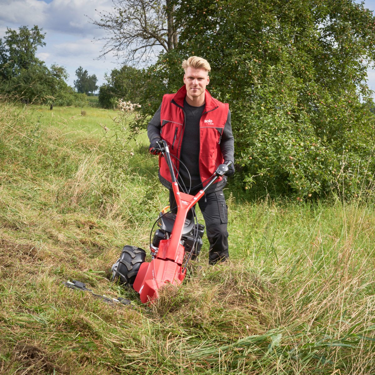 Neograničeno učinkovito upravljanje i održavanje velikih prirodnih vrtova, travnjaka u voćnjacima, slobodnih površina i livada za stočnu hranu. To simbolizira solo® by AL-KO strižna kosilica – naš univerzalni uređaj s komfornom opremom koji puca od snage.