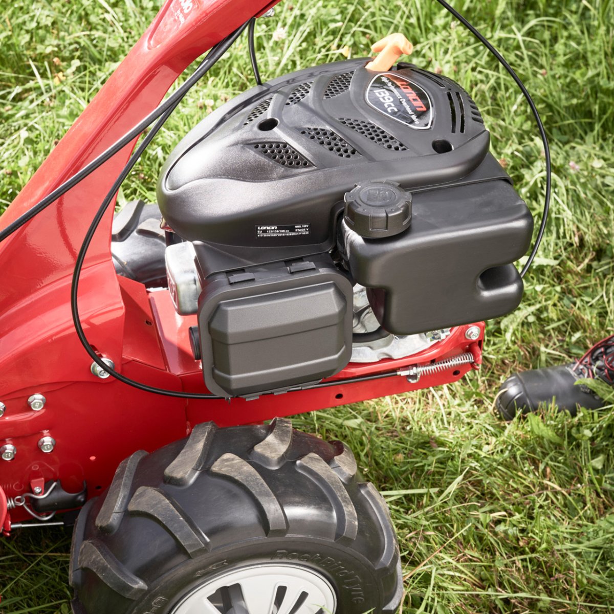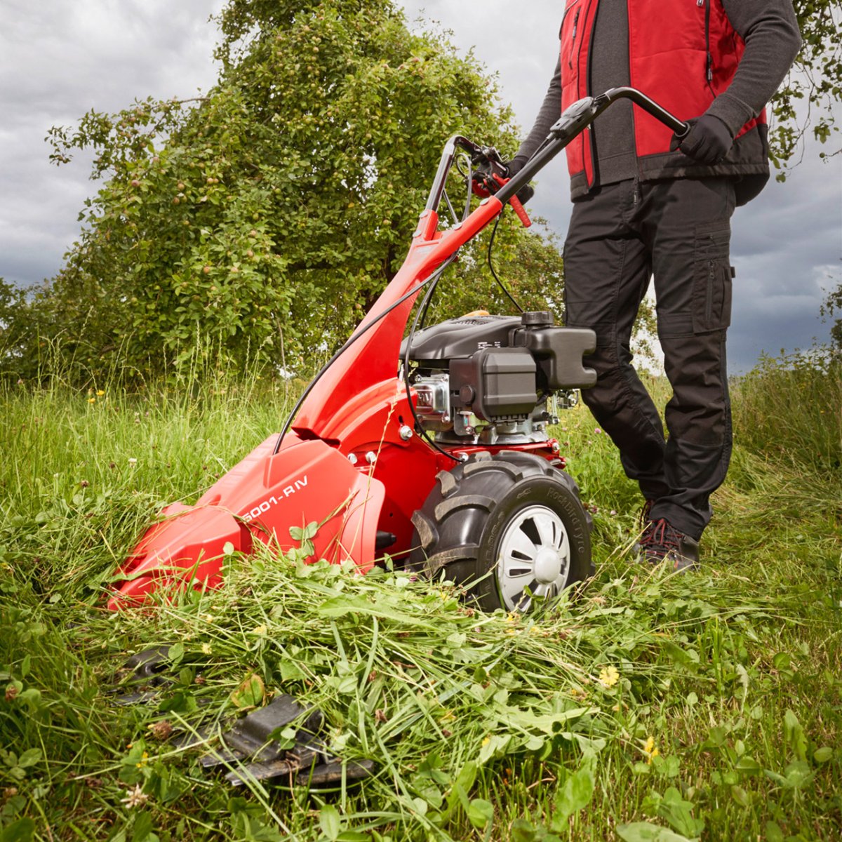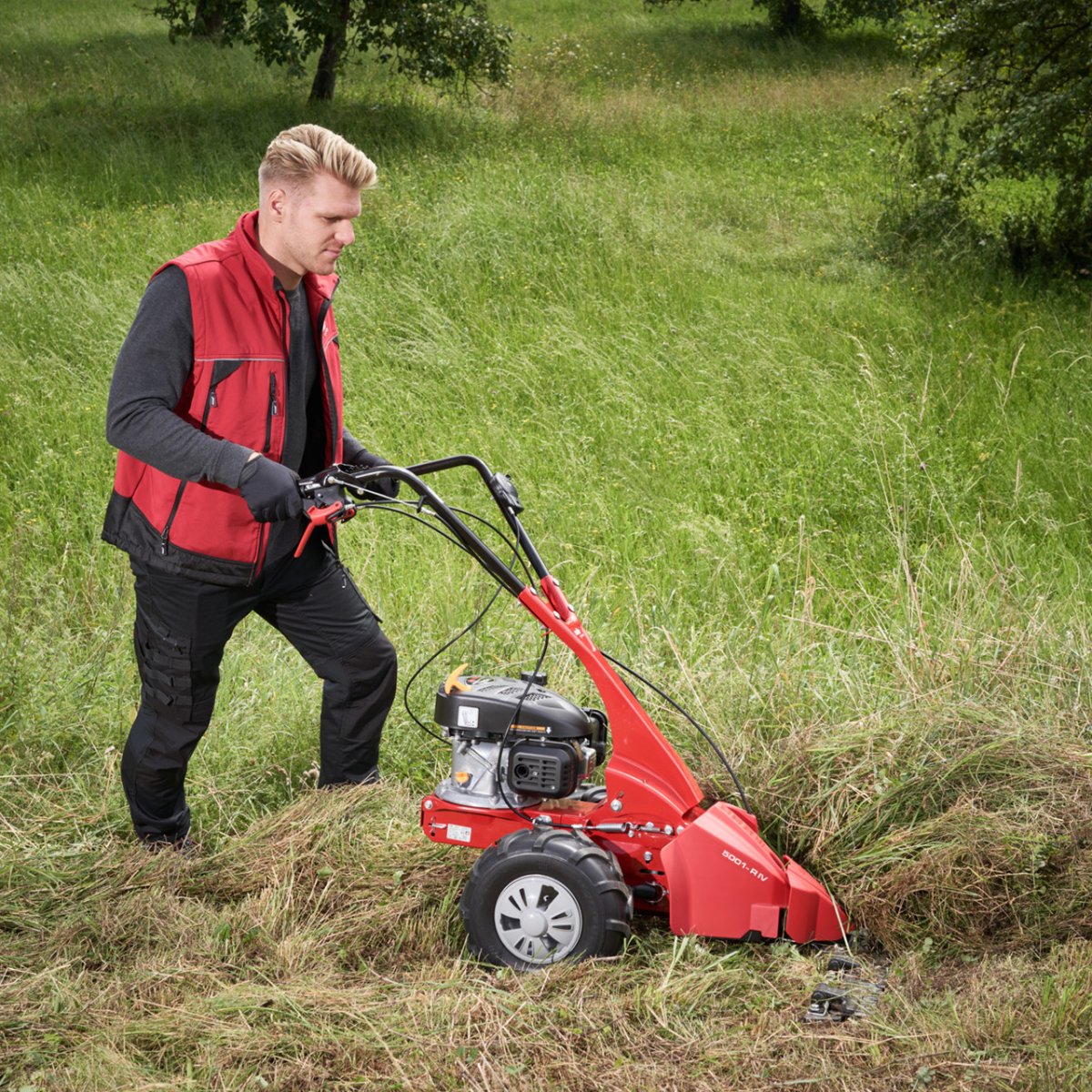 Pritom se snažni benzinski motor od 2,7 kW s pogonom kotača brine za lako napredovanje i pouzdano rezanje čak i u visokom gustišu, gustom divljem raslinju, na terenu i na padinama. Tu ovaj uređaj pokazuje svoju veliku okretnost koja će mu omogućiti upotrebu na skoro svakom rubu livade i skoro svakoj granici polja.