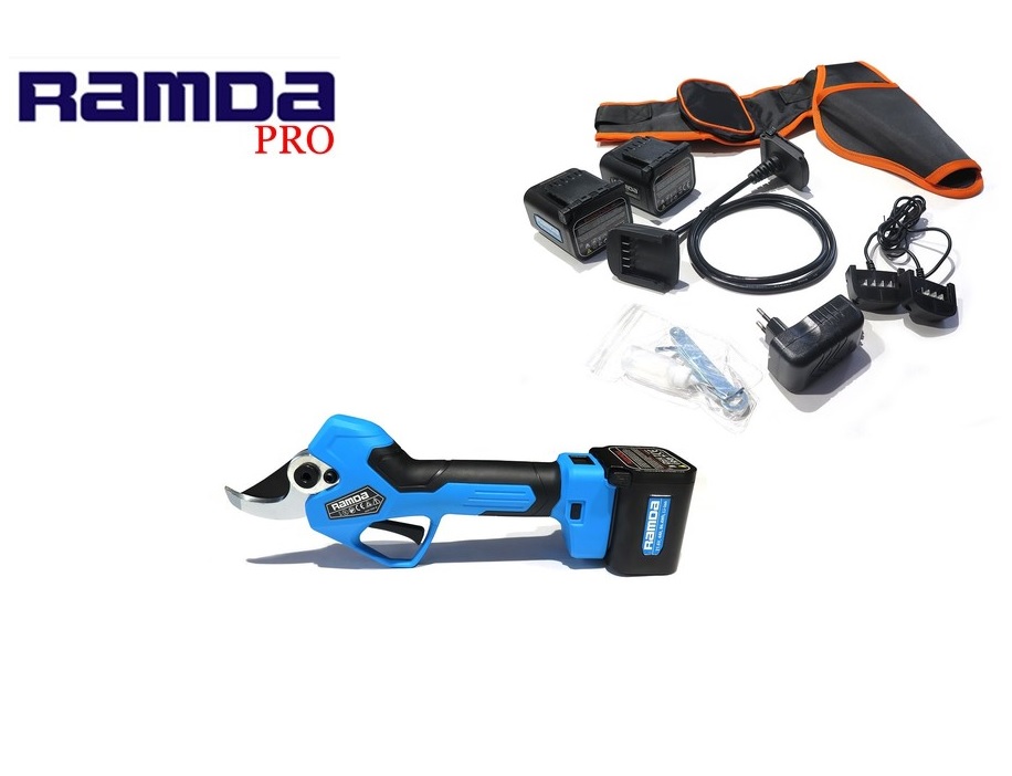 Baterijske škare za rezidbu RAMDA. Set sa dvije baterije 2 Ah, punjačem, rezervnim oštricama i alatom za izmjenu u koferu. Broj artikla: RA 698452 Cijena € 169,66 Detaljnije