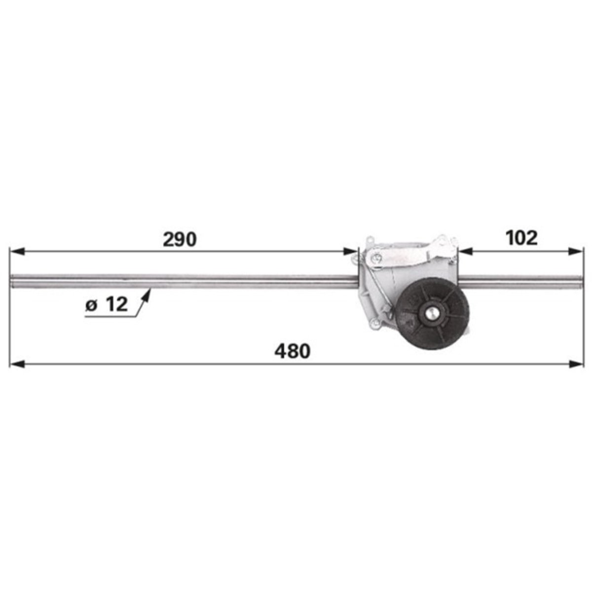 Promjer remenice - 59,5 mm, Promjer osovine - 12 mm, Duljina osovine - 475 mm
