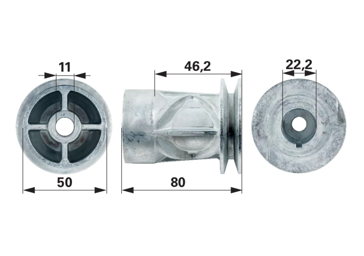 Vanjski promjer remenice - 63,8 mm / Za osovinu promjera - 22,2 mm / Ukupna visina - 79,5 mm